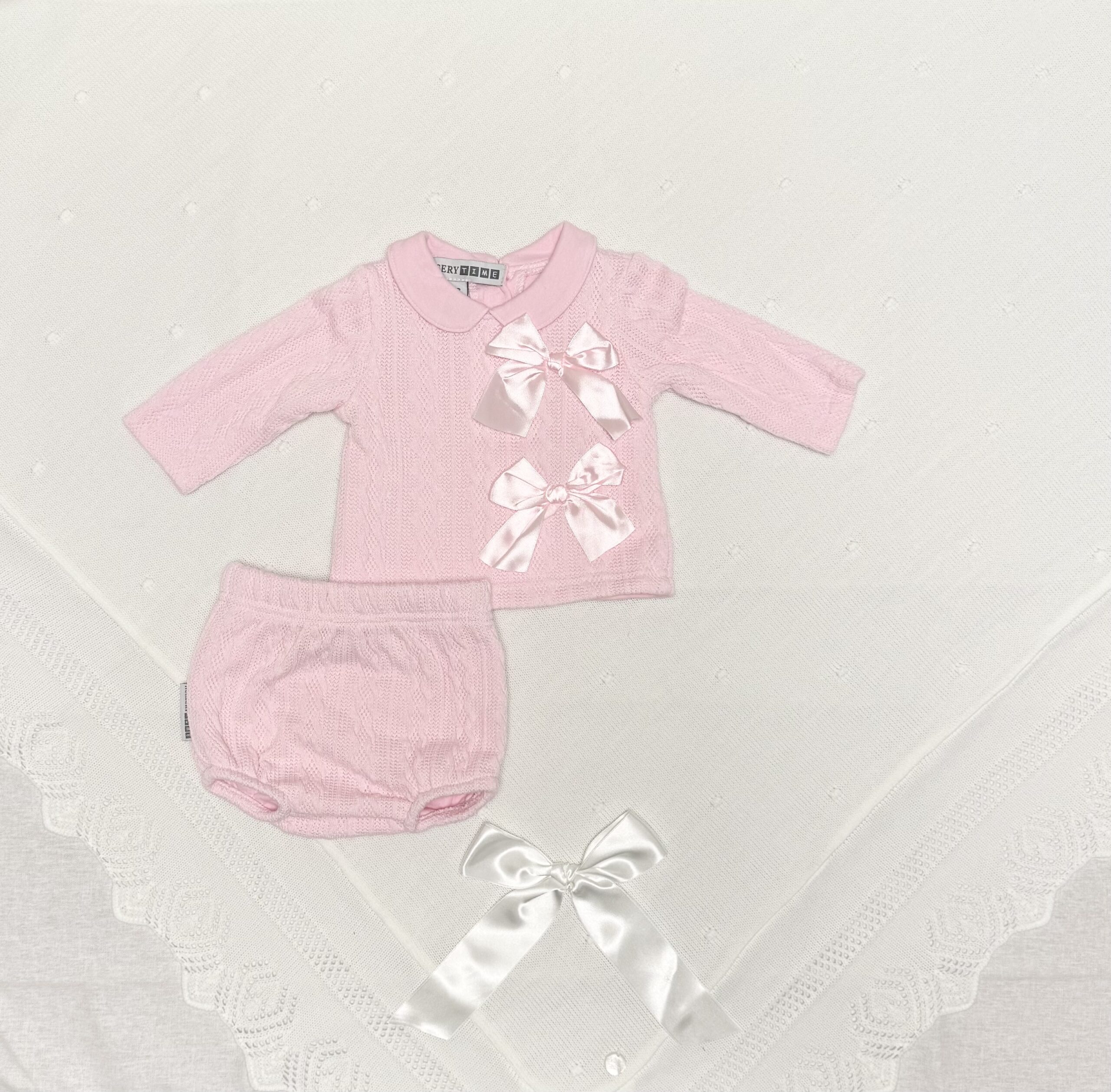 Babysett 2-delt rosa med sløyfer fra Nursery Time er et nydelig og praktisk antrekk til de minste. Settet består av en langermet topp med pene detaljer og påsydde satengsløyfer, samt matchende trusebukse. Mykt og elastisk materiale gir barnet høy komfort og bevegelsesfrihet, samtidig som designet gjør settet perfekt til både hverdags og spesielle anledninger.