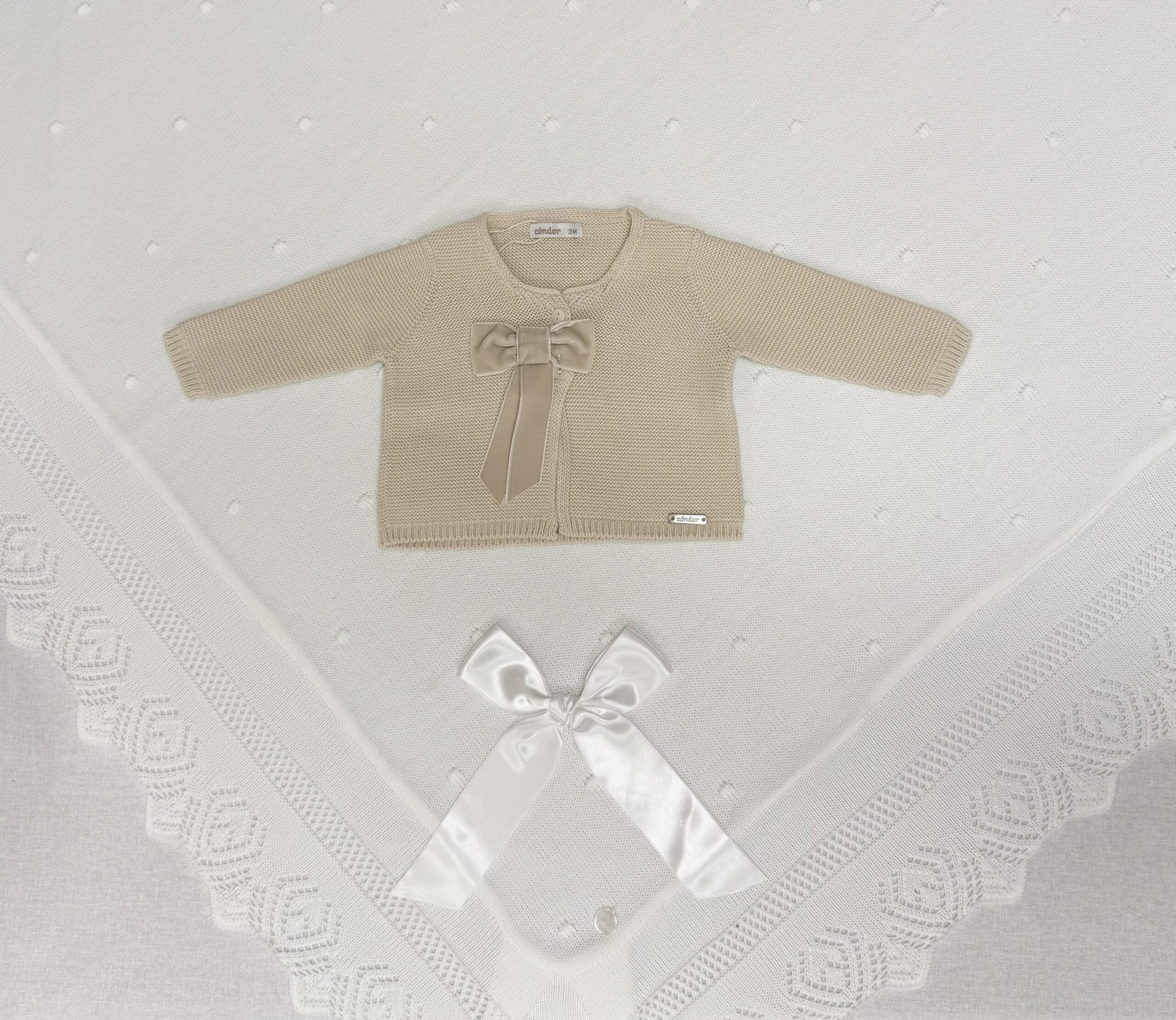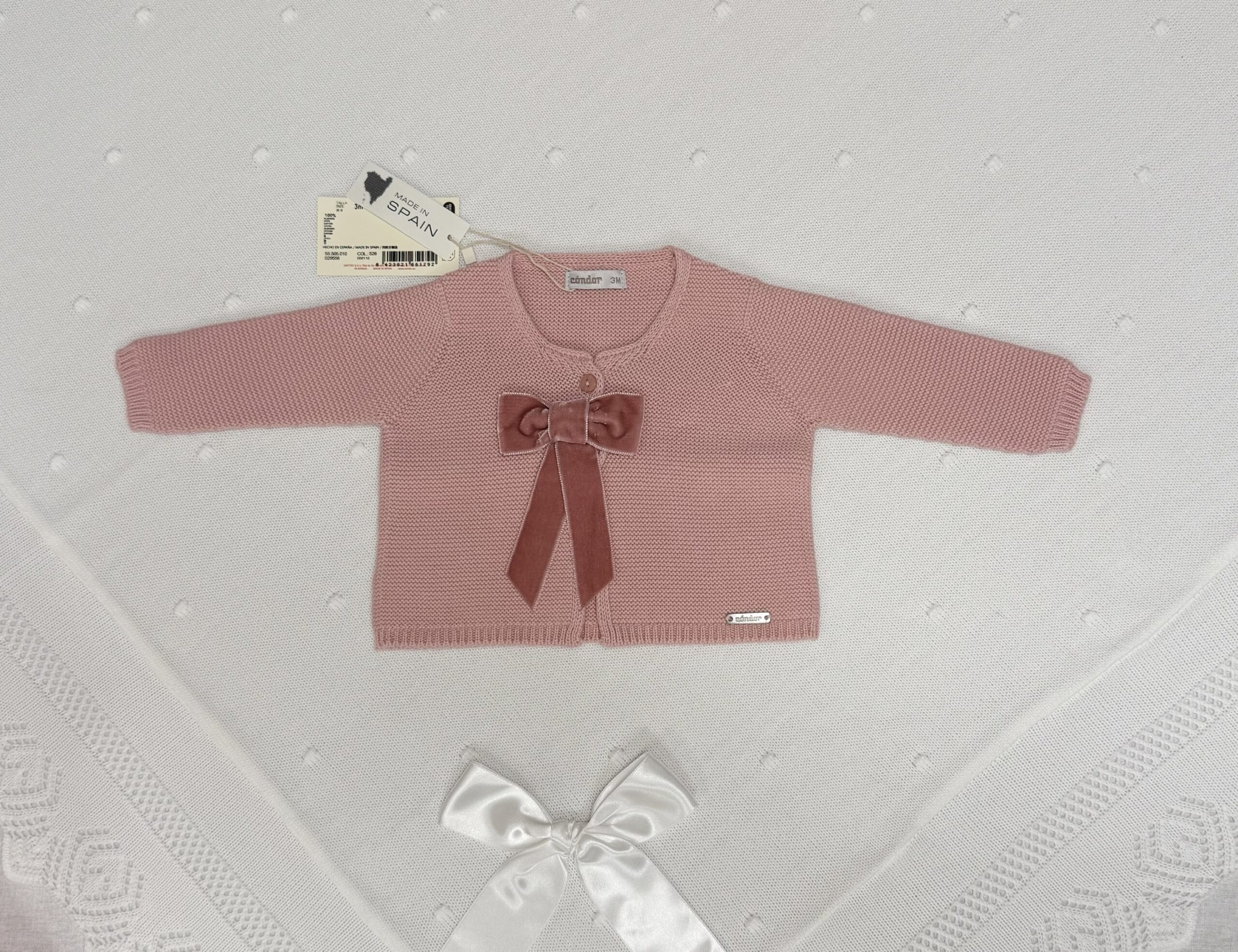 Nydelig strikket cardigan fra Còndor, dekorert med en stor, elegant sløyfe foran. Et klassisk og tidløst plagg som passer perfekt til både hverdagsbruk og finere anledninger.