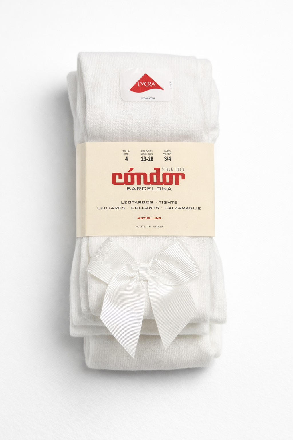 Nydelig strømpebukse fra Cóndor, dekorert med en søt sløyfe ved ankelen. En tidløs og elegant strømpebukse som passer perfekt til både kjoler, bodyer og sett – like fin til hverdags som til spesielle anledninger.